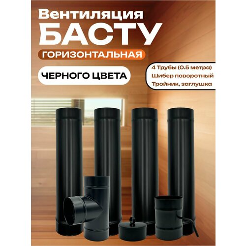 Вентиляция Басту для Бани Горизонтальная "Компакт" (проход через стену) Черного цвета