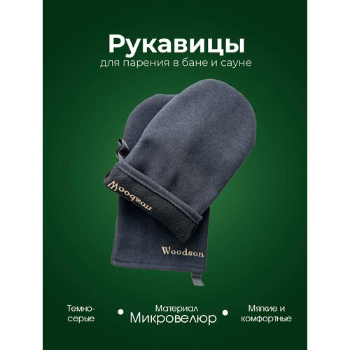Рукавицы для парения в бане и сауне из микровелюра Woodson, тёмно-серого цвета, для обеспечения безопасной подачи воды на камни