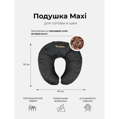 Подушка для бани Woodson Второе дыхание GRAY, MAXI с гречичной лузгой