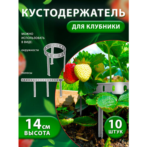 зеленыйОпоры для клубники простой способ чтобы предотвратить потери ягод на вашем садовом участке. Данный кустодержатель предназначен для удержания куста в вертикальном положении и снятия нагрузки с плодоножек. Подпорка для ягод помогает сохранить плоды, предотвратить гниение, собрать богатый урожай. Пластиковая опора под землянику предотвращает ягоды от контакта с землей, тем самым защищает плоды от загнивания, от слизней, от вредителей, а также улучшают циркуляцию воздуха, упрощают обработку кустов и сокращают потерю урожая. Благодаря кустодержателю для клубники ваши ягоды будут получать больше солнечного света, быстрее созревать. Плоды ягод, выращенные на подставке для клубники, не соприкасаются с землей, а значит вы сможете есть их прямо с грядки. Этот держатель для ягод можно использовать как опору для домашних цветов и для поддержки комнатных растений, также опоры для кустов облегчат вам уход за кустарниками на приусадебном участке. Опора для клубники подходит для кустиков разного размера. Высота опоры 13 см,