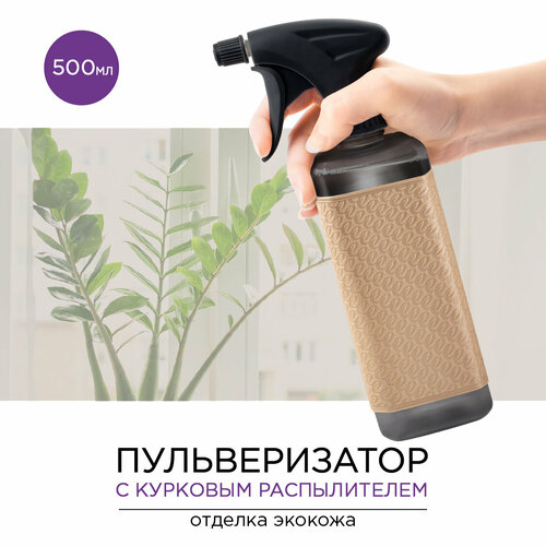 Пульверизатор для воды, опрыскиватель, флакон с распылителем для воды, опрыскиватель для растений, EcoCaps, ЭкоКапс, флакон 500 мл, цвет бежевый