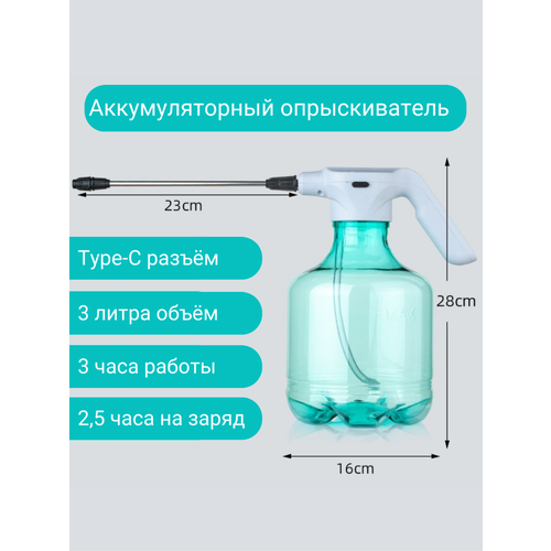 Подходит для полива огородов, садов, распыления пестицидов, дезинфекции помещений, а также для мойки автомобилей и окон. Многофункциональный прибор, необходимый в каждом доме. Эргономичная ручка с встроенным аккумулятором на 2400 мАч и 3,7 В, медный мотор. Долговечный и стабильный, может работать до 120 минут при активном поливе.