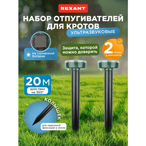 Набор отпугивателей кротов Rexant 71-0067, ультразвуковой, 2 шт, R до 60 м 7099619