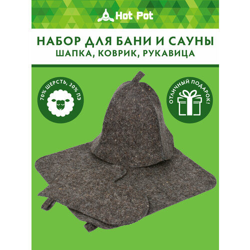 Набор из 3-х предметов (Шапка, коврик, рукавица) "Hot Pot", войлок
