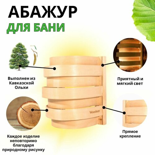Абажур деревянный для бани и сауны Woodson S3 прямой "Компакт", ольха