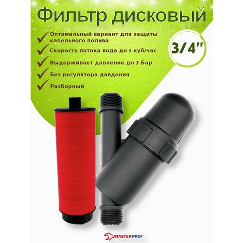 Фильтр для капельного полива 3/4" дисковый разборный, без регулятора давления, тонкой очистки воды