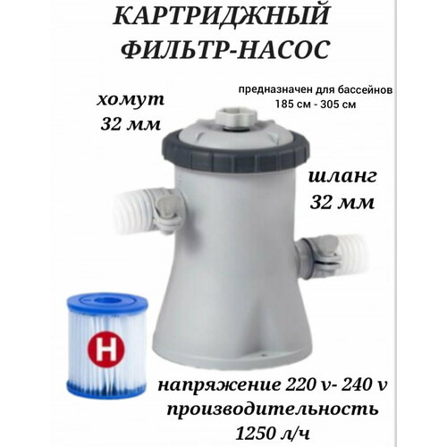 Картриджный фильтр насос 1250 л. ч, фильтрующий насос 28602, фильтр насос для бассейнов от 183 см до 305 см, фильтр насос для очистки воды