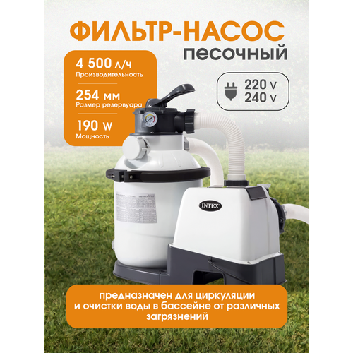 Электрический фильтр-насос песочный INTEX (4.5м3/ч, резервуар для песка 13.1кг, фракция 0.45-0.85мм)