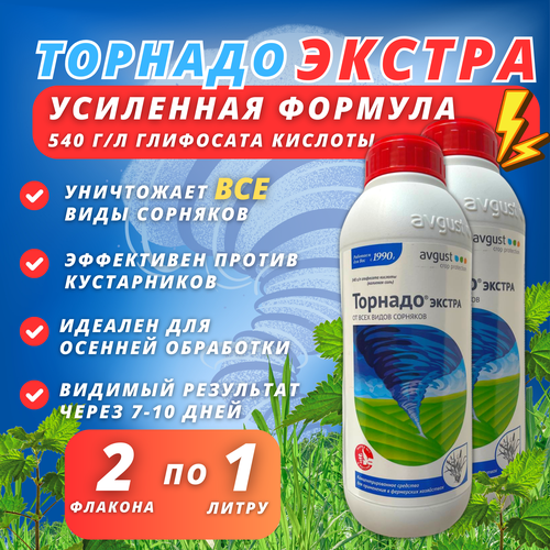 Средство для защиты растений от сорняков Август Торнадо Экстра 540, набор два флакона по 1 литру