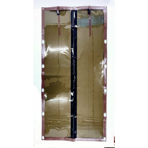 Мягкое окно(дверь) две молнии в центре, 220 см (в) х130см (ш) глухое крепение на саморез- для беседки, веранды, террасы (коричневая окантовка, тонированная пленка)