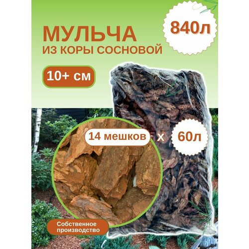 Мульча органическая из коры сосновой большая (более 10 см) 60 л. Комплект 14шт