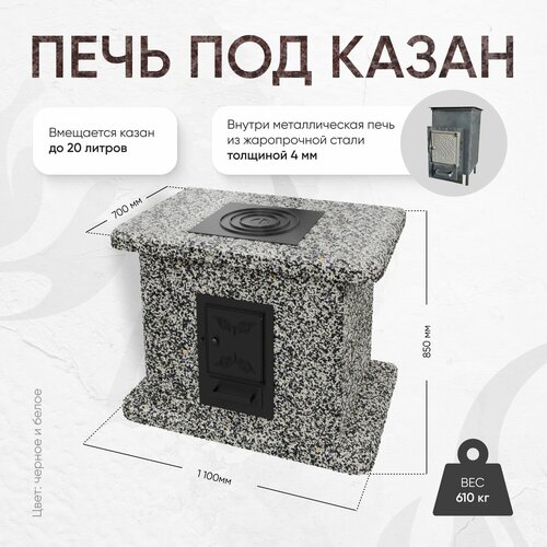 Печь для казана с варочной панелью и трубой "Куб L" 3 мм