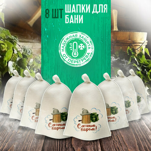 Шапка для бани "С легким паром", банная шапка ”Бацькина баня 8 шт