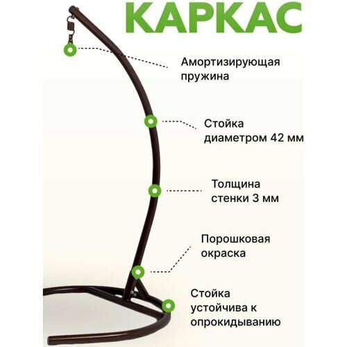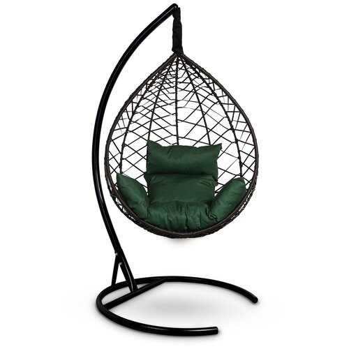 Подвесное кресло-кокон ALICANTE коричневый + каркас (зеленая подушка)