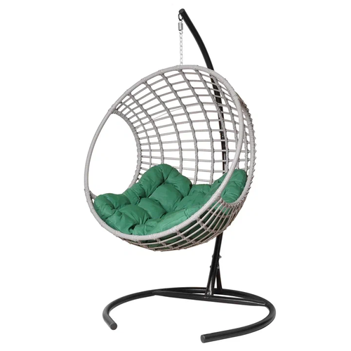 Подвесное двухместное кресло-кокон фиджи серый (зеленая подушка, полиэстер)
