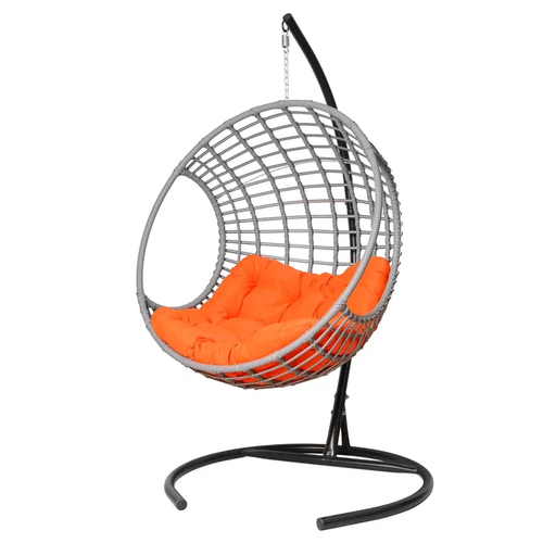 Подвесное кресло-кокон FLATA серый + каркас (оранжевая подушка)