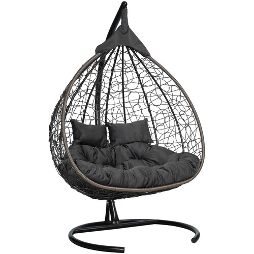 Подвесное двухместное кресло-кокон HASTA горячий шоколад + каркас (черная подушка)