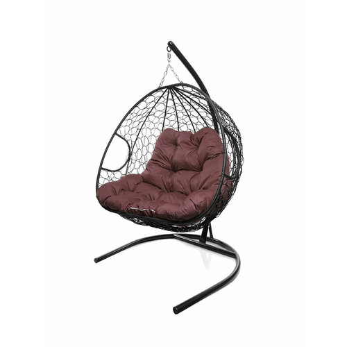 Подвесное кресло из ротанга "Для двоих" черное с бордовой подушкой M-GROUP