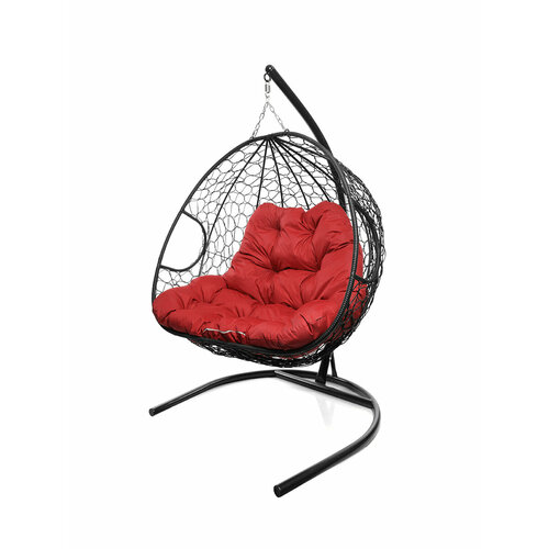 Подвесное кресло из ротанга "Для двоих" черное с красной подушкой M-GROUP