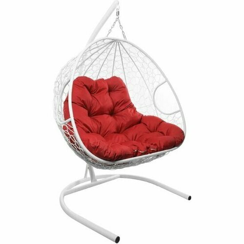 Подвесное кресло кокон двухместное M-group для двоих с ротангом белое+красная подушка