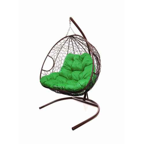 Подвесное кресло из ротанга "Для двоих" коричневое с зеленой подушкой M-GROUP
