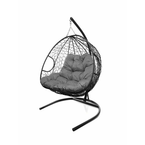 Подвесное кресло из ротанга "Для двоих" черное с серой подушкой M-GROUP