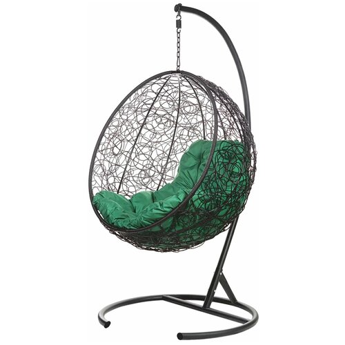 Кресло подвесное Bigarden "Tropica", коричневое, со стойкой, зелёная подушка (чехол в подарок)