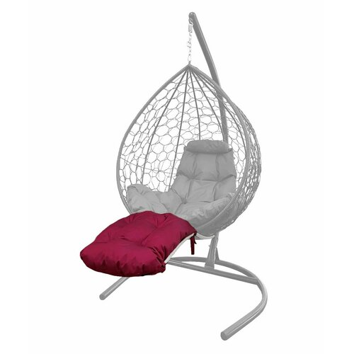 Подвесное кресло белое Для двоих люкс бордовая подушка
