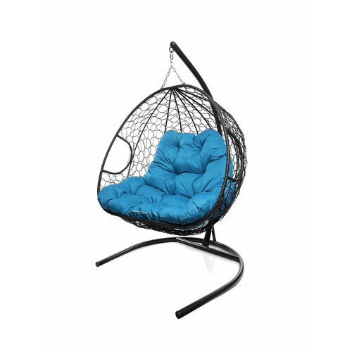 Подвесное кресло из ротанга "Для двоих" черное с голубой подушкой M-GROUP