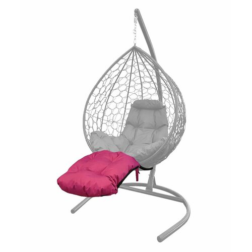 Подвесное кресло овал ротанг белое, бордовая подушка