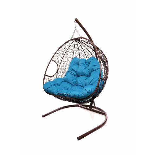 Подвесное кресло из ротанга "Для двоих" коричневое с голубой подушкой M-GROUP