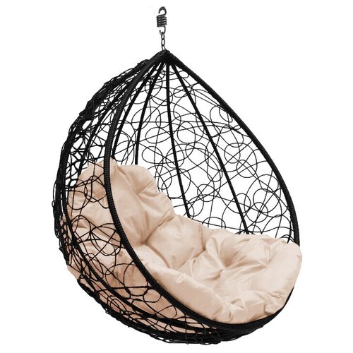 Подвесное кресло капля ротанг черное(без стойки), бежевая подушка