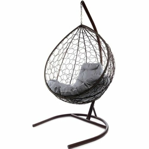 Подвесное кресло кокон M-group капля с ротангом коричневое+серая подушка