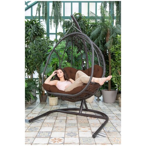 Подвесное кресло KALYMERA "Гермес", садовое кресло ротанг, до 150кг, 200х80х126см, шоколадная подушка