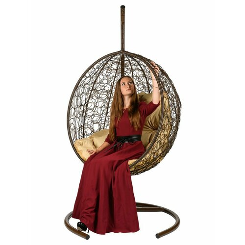 Подвесное кресло M-group круглый ротанг коричневое, коричневая подушка