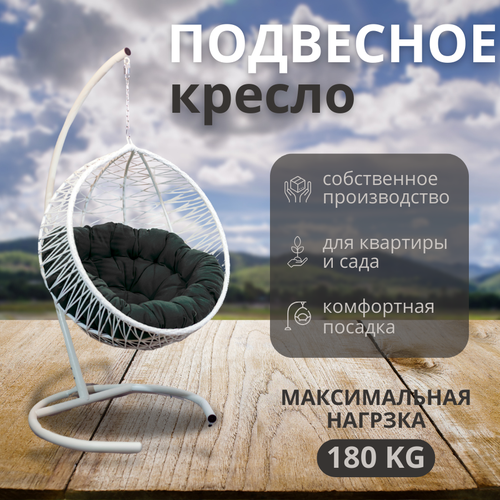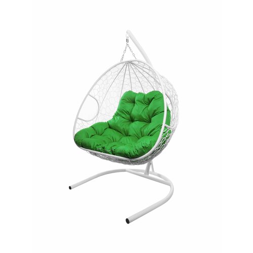 Подвесное кресло из ротанга "Для двоих" белое с зеленой подушкой M-GROUP