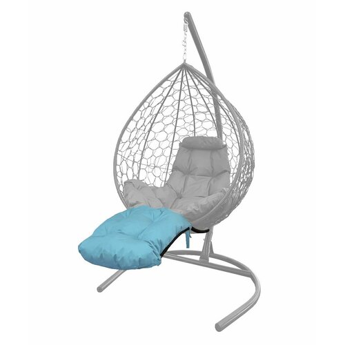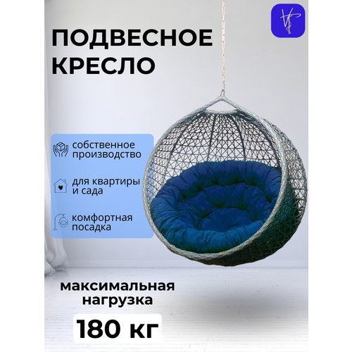 Подвесное кресло садовое, снежка без стойки, серая, синяя подушка