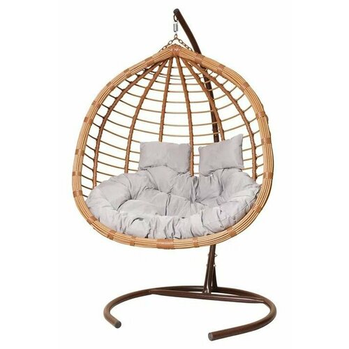 Подвесное двухместное кресло-кокон HASTA горячий шоколад + каркас (светло-серая подушка)