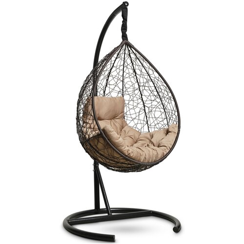 Подвесное кресло-кокон SEVILLA COMFORT коричневый + каркас (бежевая подушка)