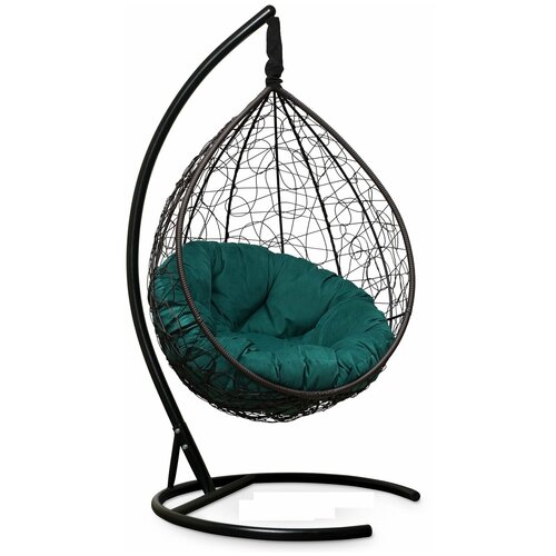 Подвесное кресло овал ротанг чёрное, зелёная подушка