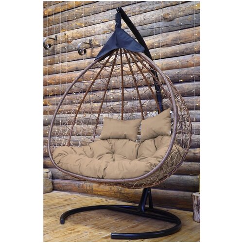 Подвесное двухместное кресло-кокон HASTA горячий шоколад + каркас (бежевая подушка)
