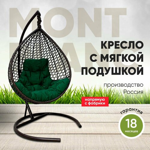 Подвесное кресло-кокон MONTBLANC COMFORT коричневый + каркас (зеленая подушка)