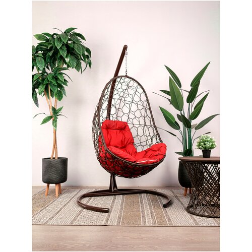 Подвесное кресло M-Group овал ротанг коричневое, красная подушка