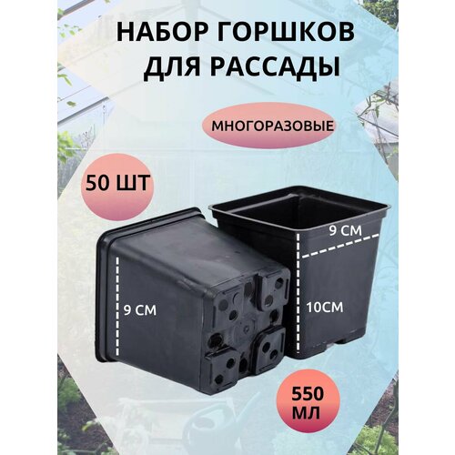 Горшки для рассады пластиковые технические 610 мл, набор стаканчиков 50 шт, d 11 см, h 9 см