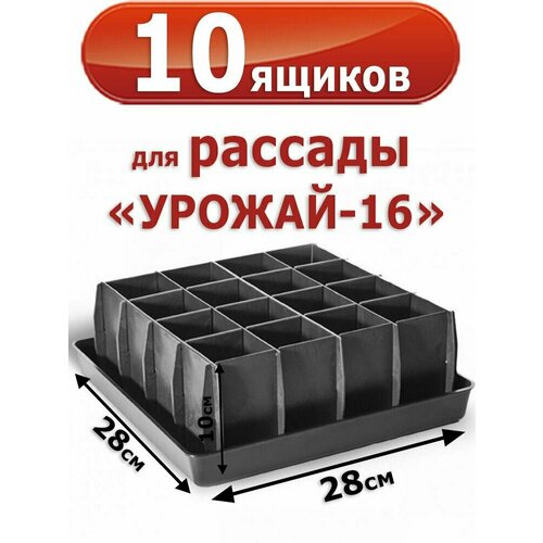 10шт Комплекта для рассады "Урожай-16" с поддоном, 16 ячеек 28х28х10 см. (1 ячейка 200 мл.)