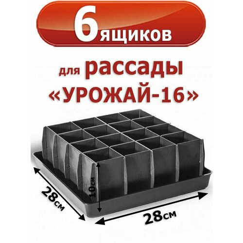 6шт Комплекта для рассады "Урожай-16" с поддоном, 16 ячеек 28х28х10 см. (1 ячейка 200 мл.)