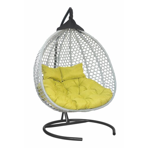 Подвесное двухместное кресло-кокон фиджи серый (салатовая подушка, рогожка)