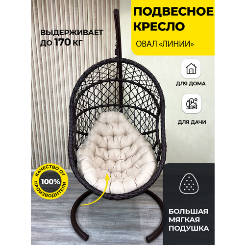 Подвесное кресло Pletenev "Овал" Коричневый + бежевая подушка