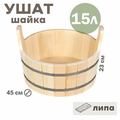 Банные Штучки, Ушат "шайка" 15 л. с пластиковой вставкой (искусственно состаренный) из Липы