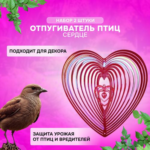 Садовая фигура отпугиватель для птиц для сада / сердце - набор 2 штуки (синее и красное)